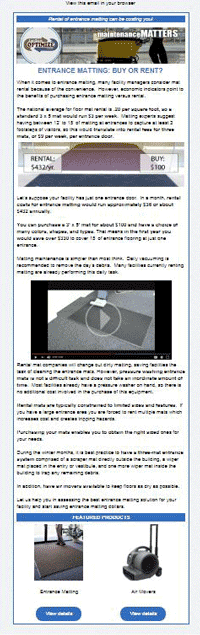 Our monthly e-newsletter program for distributors assures a content-rich, industry specific e-newsletter is distributed to your e-mail list every month.